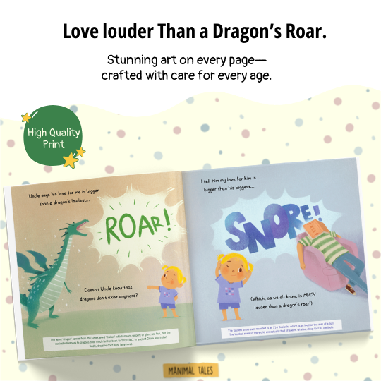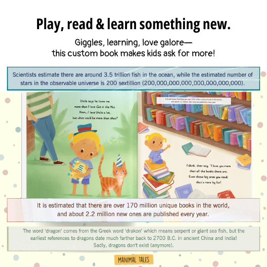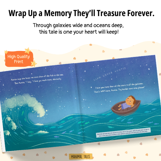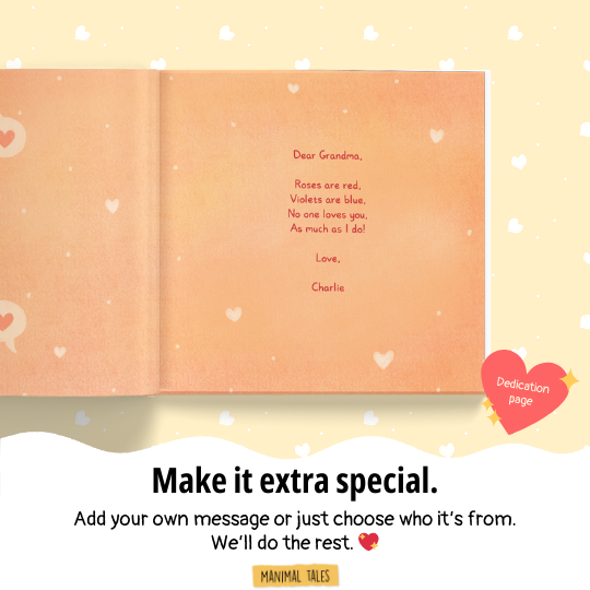 A personalized book for parents to tell their kids just how much they're loved, through beautiful text and illustrations that capture the special, seminal moments of childhood! The book works for up to four kids, and for single parents and grandparents too!Ages 0 - 10+- Regular price