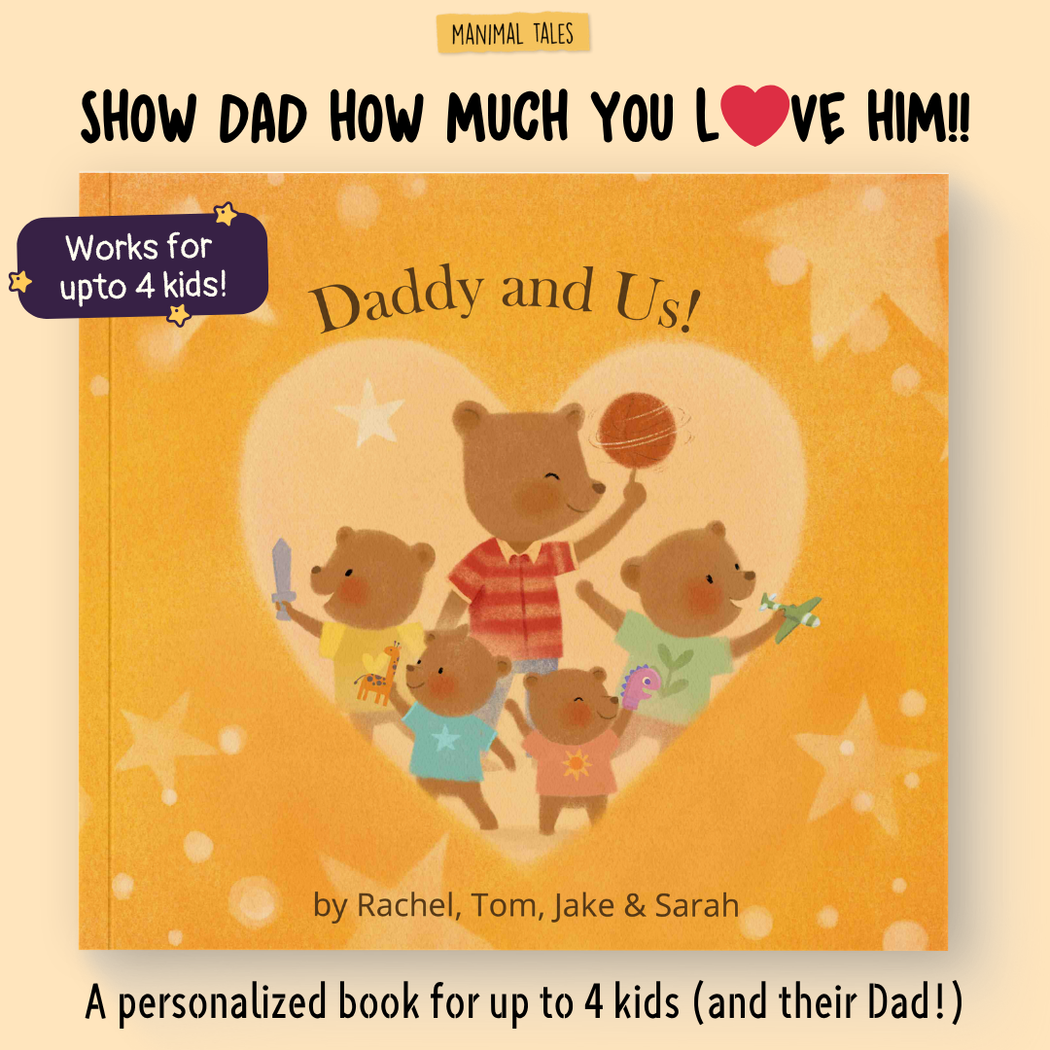 A great gift for Father's day - or any day to tell Dad how much you all love him. It's a read-aloud book for up to four kids kids to tell Dad how much they love him, with beautiful illustrations and text that's highly personalized!Ages 0 - 10+- Regular price