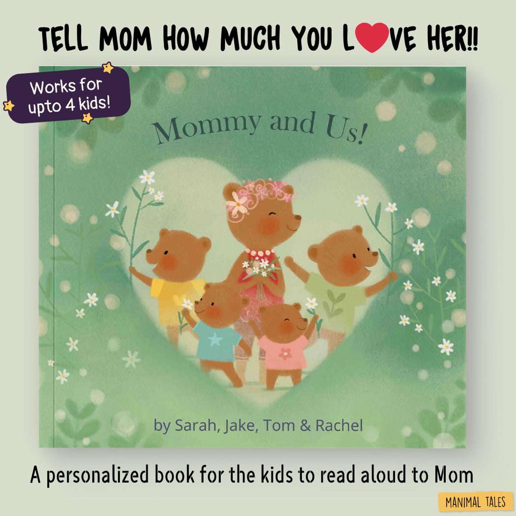 A great gift for Mother's day - or any day to tell Mom how much you all love her. It's a read-aloud book for up to four kids kids to tell Mom how much they love her, with beautiful illustrations and text that's highly personalized!Ages 0 - 10+- Regular price